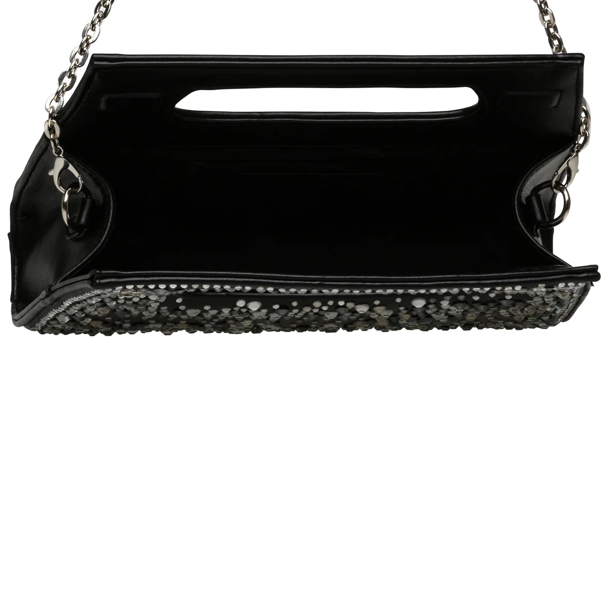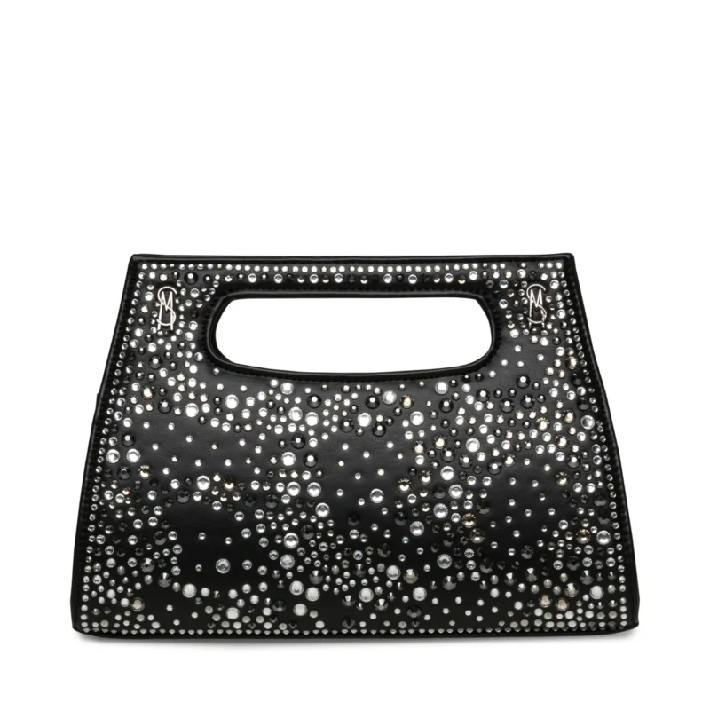 תיק צד לערב לנשים בשחור עם שיבוץ אבנים ורצועת שרשרת לנשיאה לצד הגוף מבית סטיב מאדן