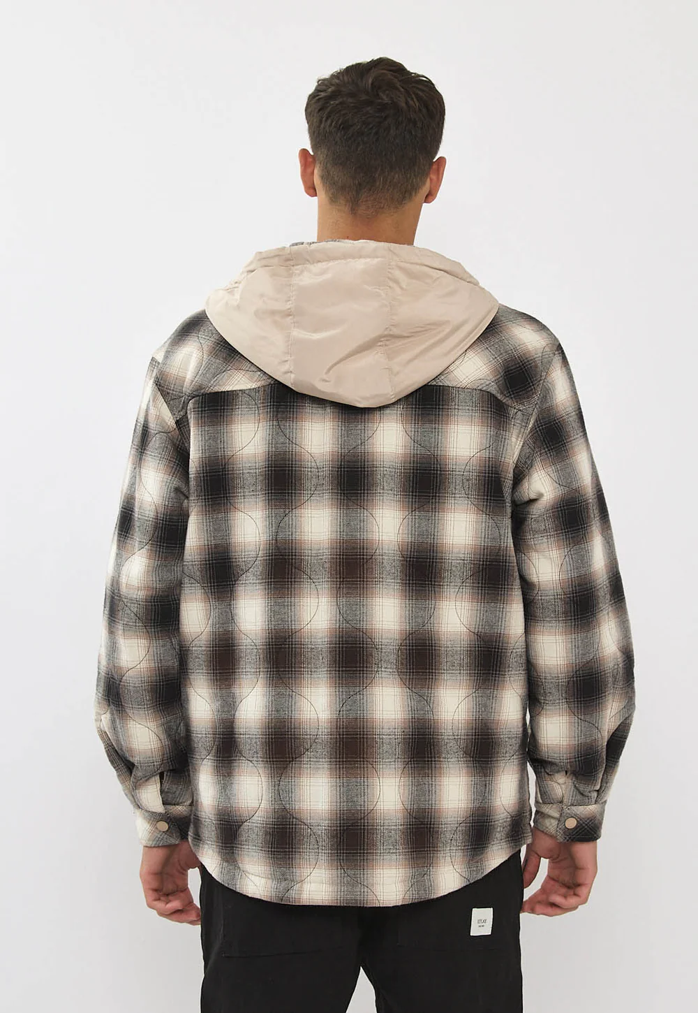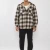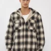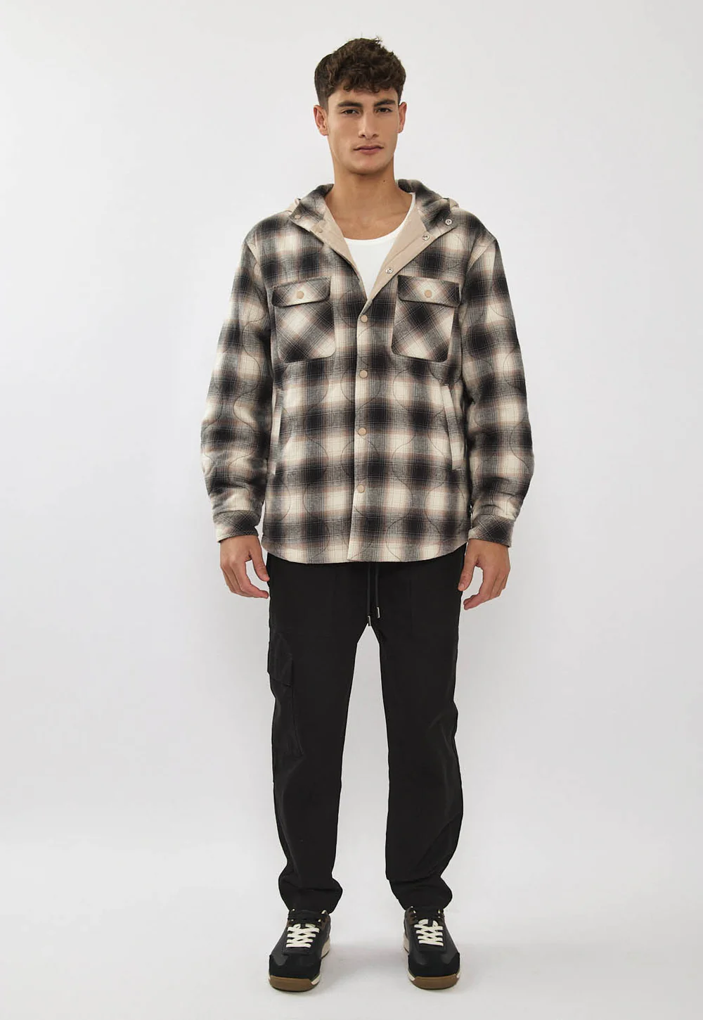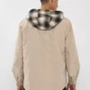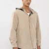 ג׳קט פלאנל לגברים בעיצוב דו־צדדי: צד אחד בד משובץ בגווני חום־קרם וצד שני חלק בצבע בז׳ נקי. כולל קפוצ׳ון, כפתורי לחיצה ורכיבי כיסים שימושיים – מושלם כשכבה עליונה למראה אורבני מתוחכם בשתי גרסאות במוצר אחד.