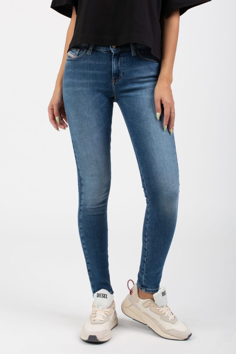 ג׳ינס סקיני בגזרה צמודה ובגובה מותן בינוני, בעיצוב קלאסי ומחמיא מבית המותג האיטלקי DIESEL.