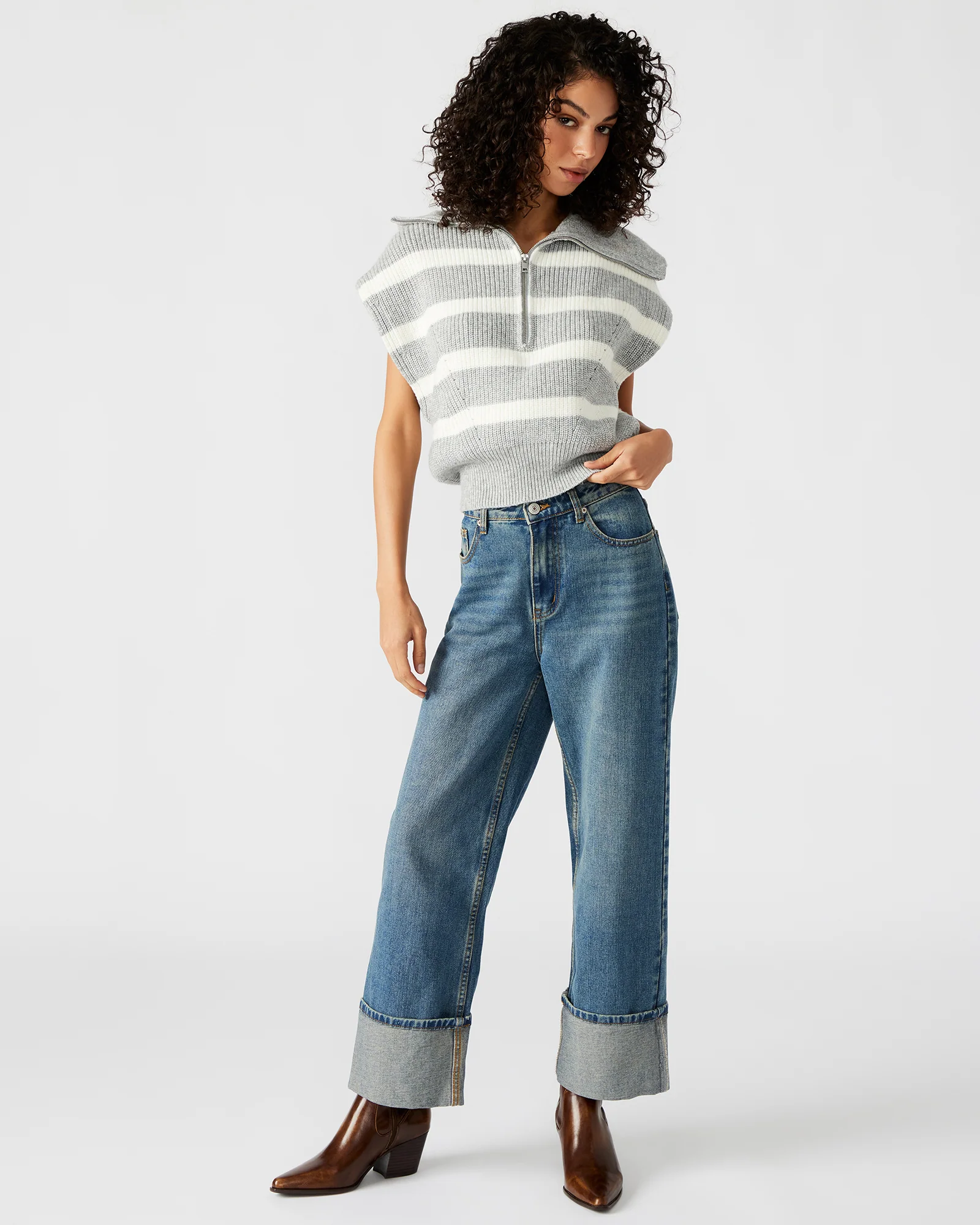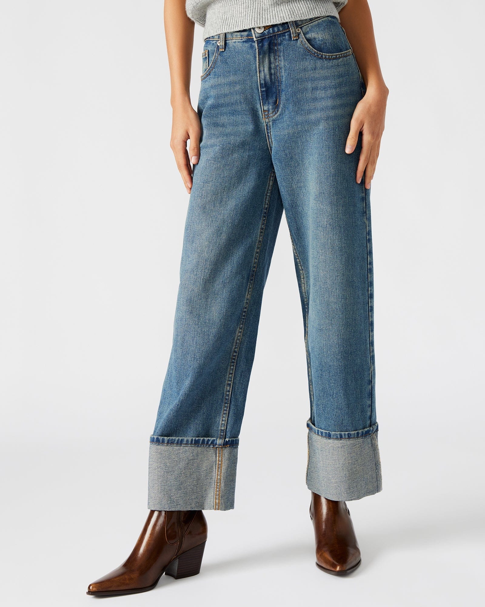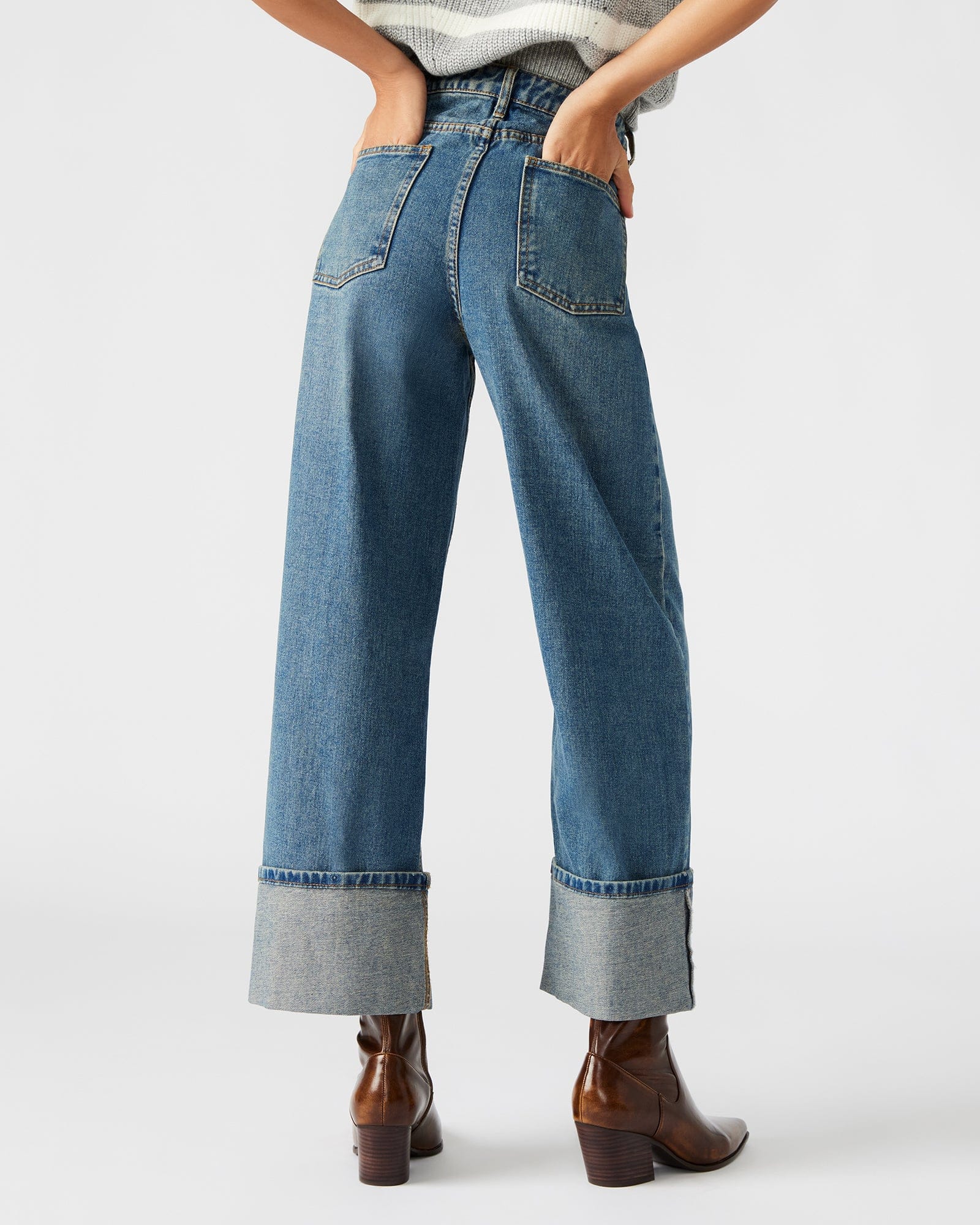 מכנסי ג׳ינס לנשים עם קיפול במכפלת מבית סטיב מאדן, הוא מושלם למראה נוח אך מסוגנן.