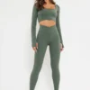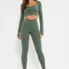 טייץ ספורטיבי ארוך לנשים בצבע ירוק עמוק, המעוצב בצורה מושלמת להחמיא לגוף בכל תנועה. הטייץ עשוי מבד אלסטי ונושם שמעניק נוחות מירבית תוך שמירה על קווי הגוף המודגשים והמחוטבים. הגזרה הגבוהה מספקת תמיכה מרבית ומראה מחמיא במיוחד, בעוד העיצוב האלגנטי והחלק מתאים לכל סוגי האימונים וגם לשימוש יום-יומי. הטייץ מעניק חוויית לבישה מהנה ואופנתית בכל סיטואציה.