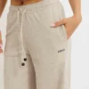 מכנסיים רחבים ונוחים מבד אינטרלוק רך ואיכותי, עם מותן גבוה ושרוך קשירה עם קצוות דקורטיביים. מתאימים לכל לוק יומיומי או לאווירה אלגנטית ומשוחררת. שילוב מושלם בין סטייל ונוחות.
