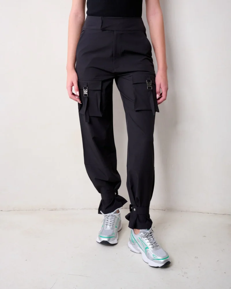 מכנסים ארוכים לנשים בשחור בסגנון קרגו עם סיומת קשירה מבית סטיב מאדן