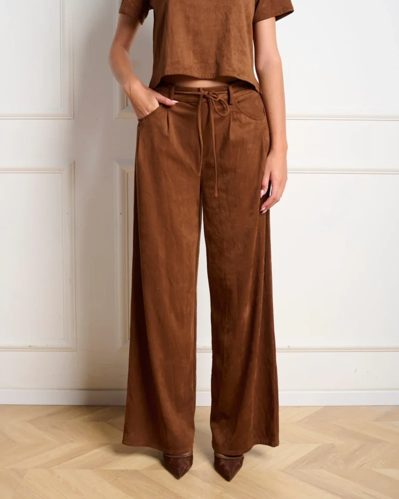 מכנסי ג'וגר בדמוי זמש ALYSIA בקאמל
