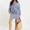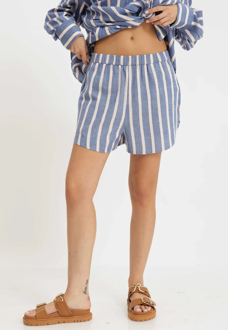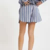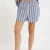 מכנסון קצר ונוח לנשים בגזרה משוחררת, עם גומי במותן שמעניק התאמה מושלמת. עשוי בד אוורירי שמתאים במיוחד לימים חמים. עיצוב פסים קלאסי בגווני כחול ולבן ללוק קיץ מרענן וסטייל effortless. נהדר לשילוב עם חולצה תואמת או טי-שירט לבנה.