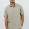 חולצה קצרה לגברים מבד פשתן קליל, בגוון קרם טבעי שמעניק מראה רענן ואלגנטי. גזרה נקייה, כפתורים קדמיים וצווארון פתוח – השילוב המושלם בין נוחות לבין סגנון מדויק לקיץ. מתאימה לשילוב עם מכנס פשתן תואם או ג’ינס בהיר לווייב חופשי עם נוכחות.