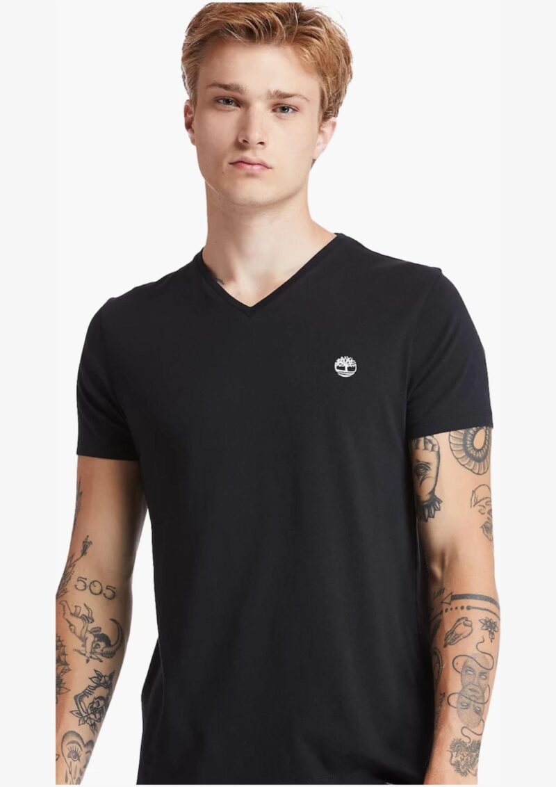 חולצת בייסיק קצרה לגברים מבית Timberland, בעיצוב נקי עם מחשוף V למראה יומיומי ונוח.