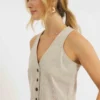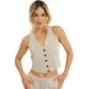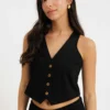 וסט אלגנטי בגזרה מחמיאה עם כפתורים בחזית, עשוי מבד אינטרלוק נעים ואיכותי. מושלם לשילוב עם מכנסיים תואמים ללוק מוקפד, או עם ג'ינס לשיק יומיומי. תוספת מדויקת לכל מלתחה!
