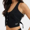 וסט אלגנטי בגזרה מחמיאה עם כפתורים כסופים בחזית וכיסים דקורטיביים, מושלם לשילוב עם מכנסיים תואמים או כחלק מלוק קז'ואלי ושיקי. פריט חובה בארון לכל עונה!