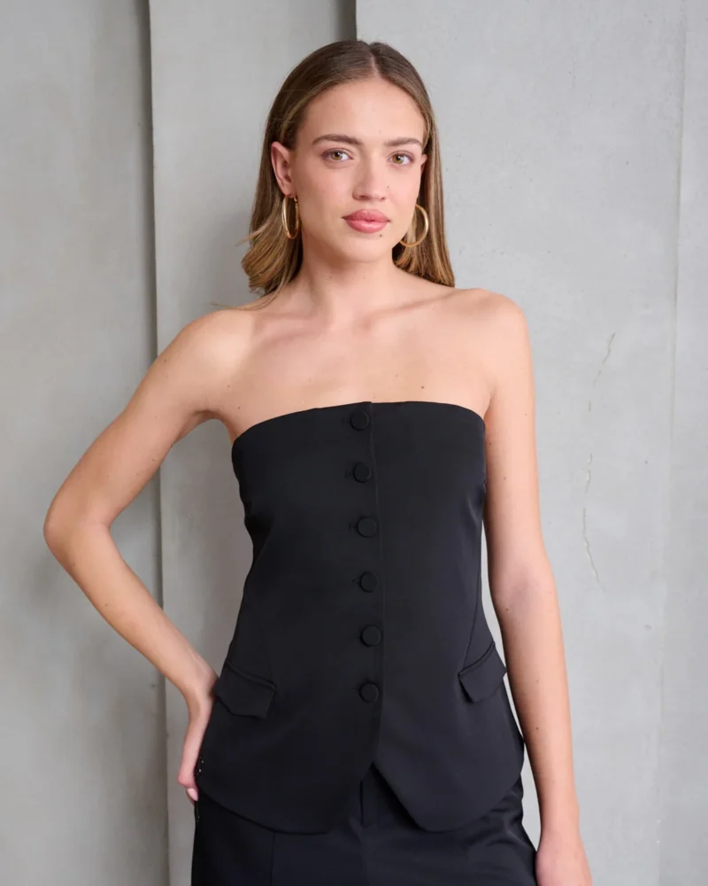 חולצת סטרפלס לנשים בשחור בסגנון ווסט מבית סטיב מאדן