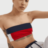 הטופ הקייצי הזה בגזרת בנדו מציג עיצוב קולור בלוק בולט והלוגו של Tommy Jeans רקום בגב.