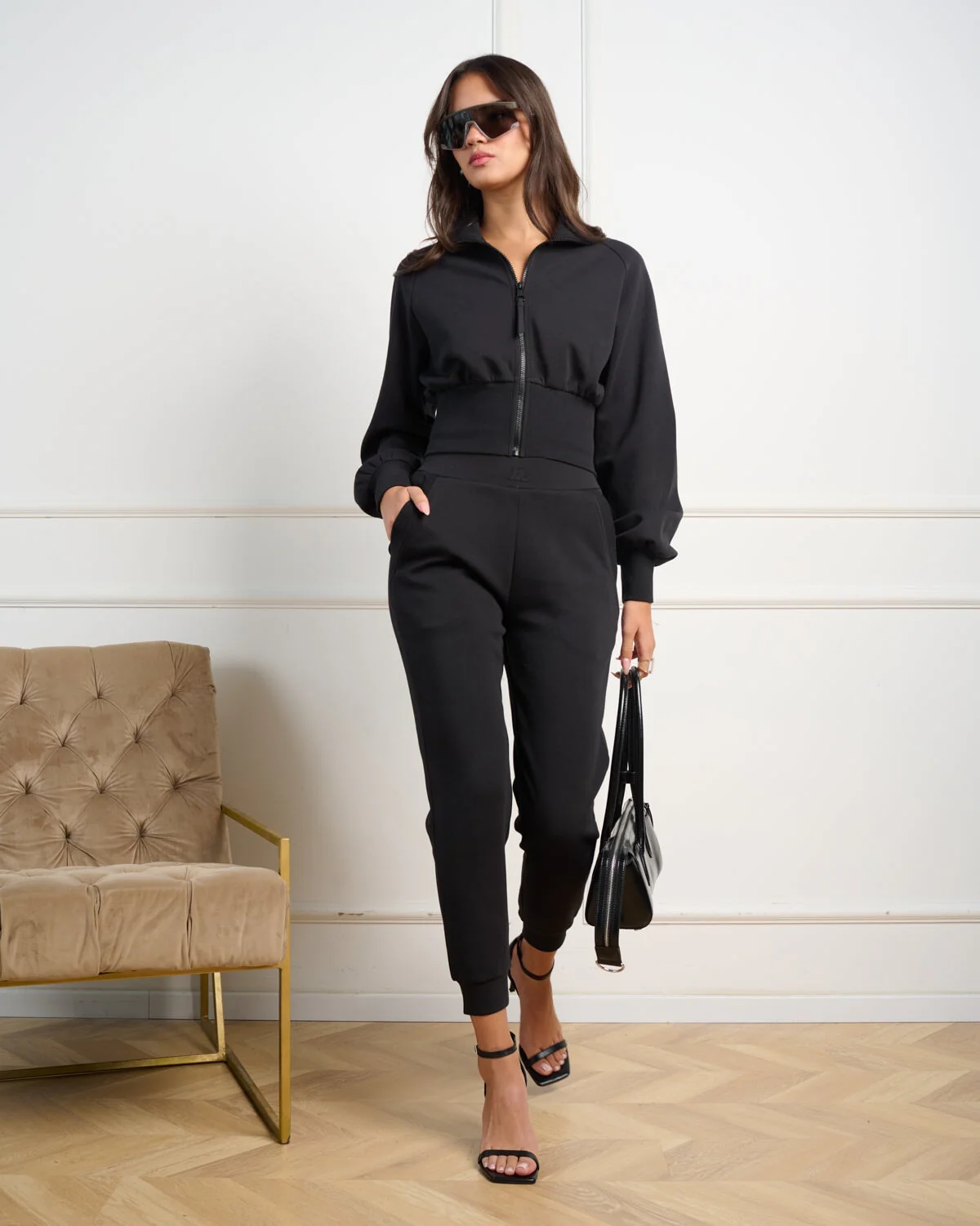 ג'קט ספורטיבי לנשים בשחור עם מנג'ט רחב מבית סטיב מאדן