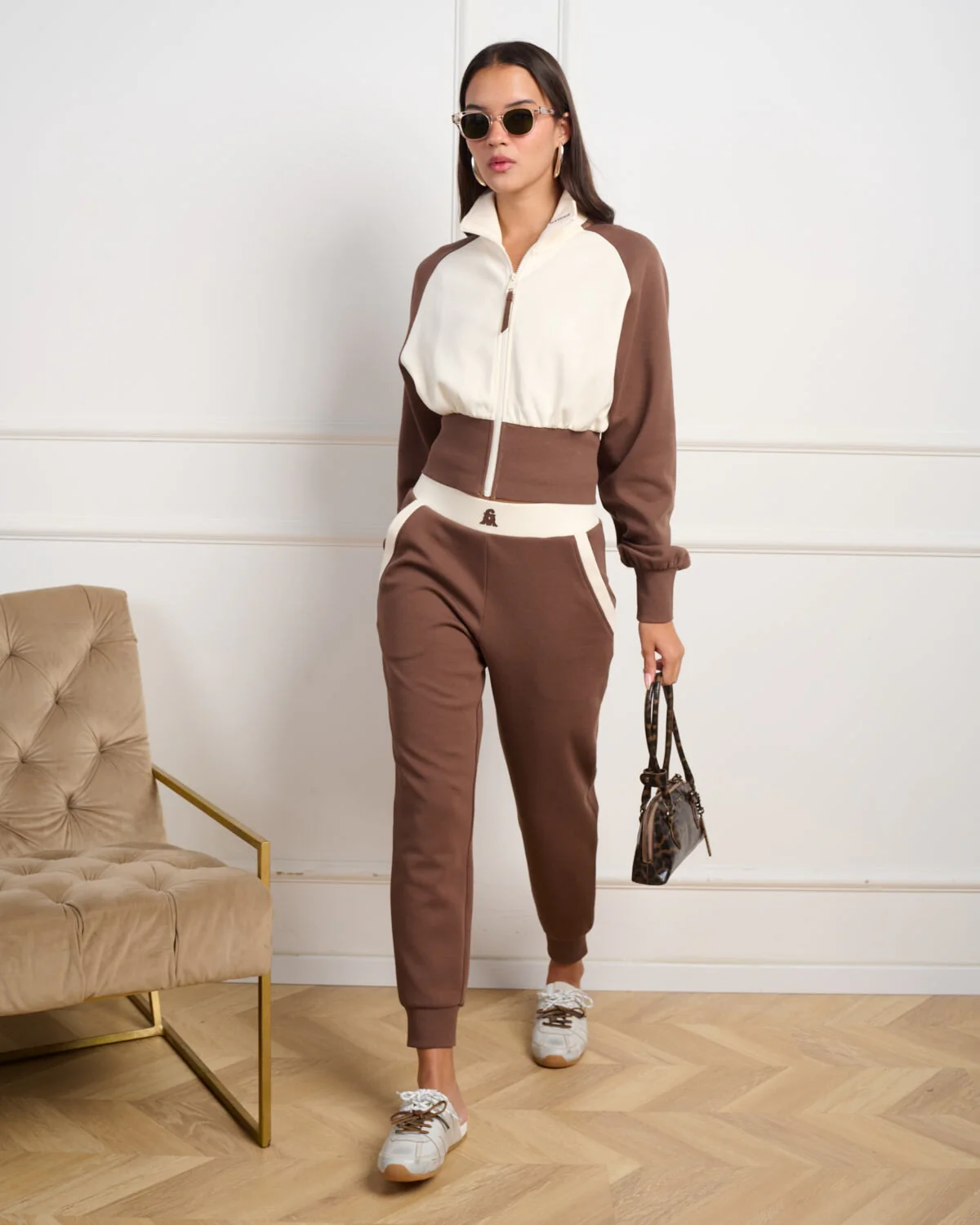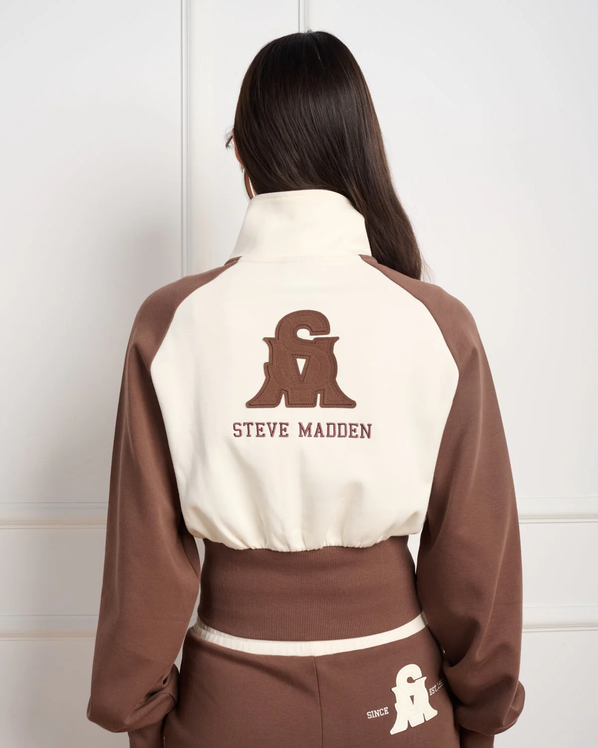 ג'קט ספורטיבי לנשים בחום משולב עם מנג'ט רחב מבית סטיב מאדן