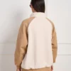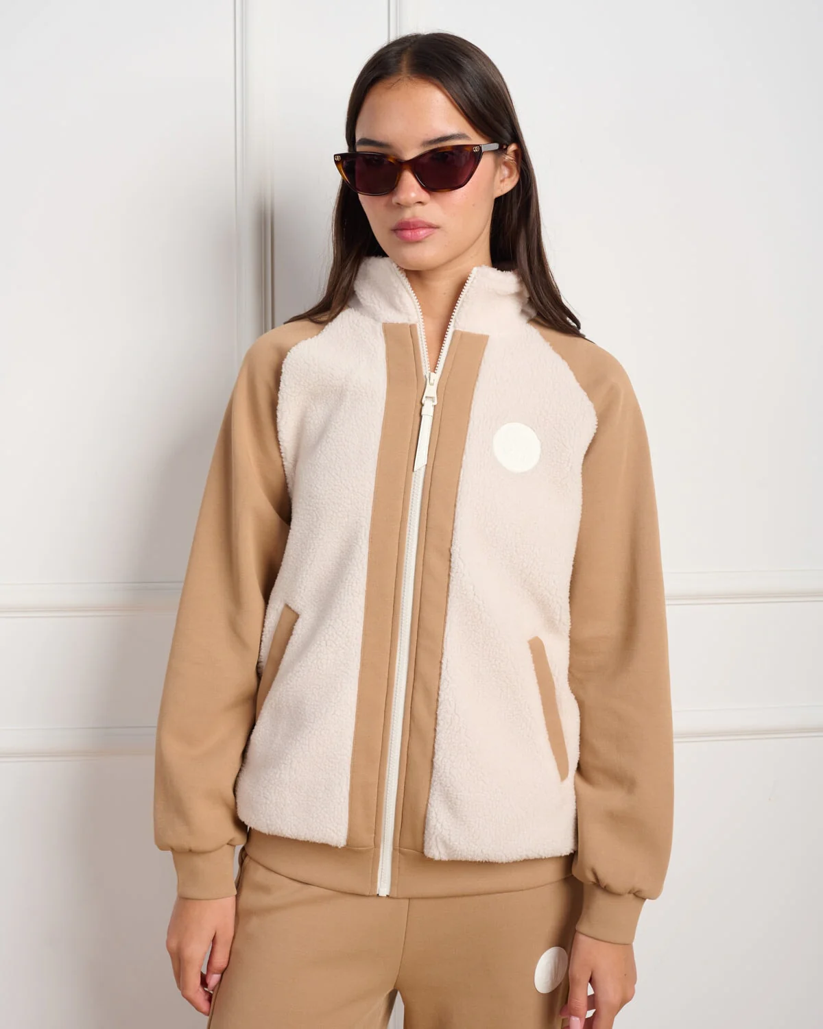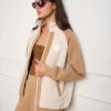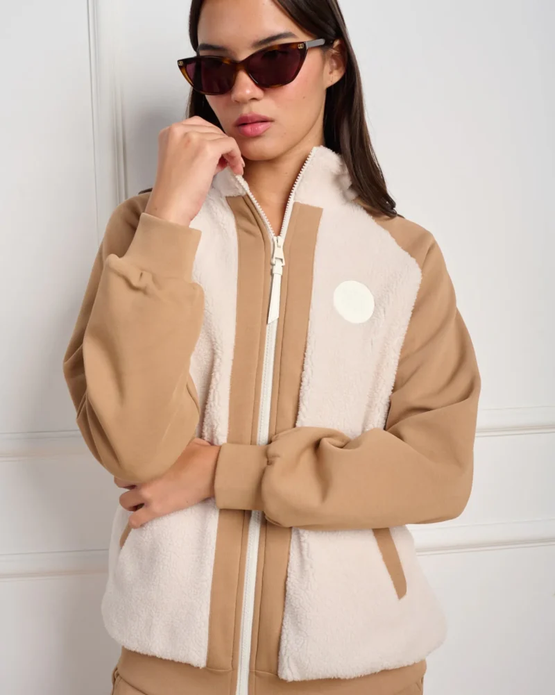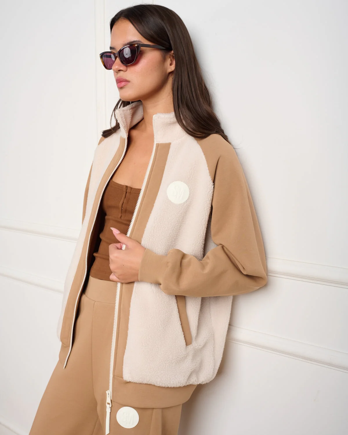 ג'קט ספורטיבי לנשים בקאמל משולב גוון קרם בפליז מבית סטיב מאדן
