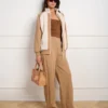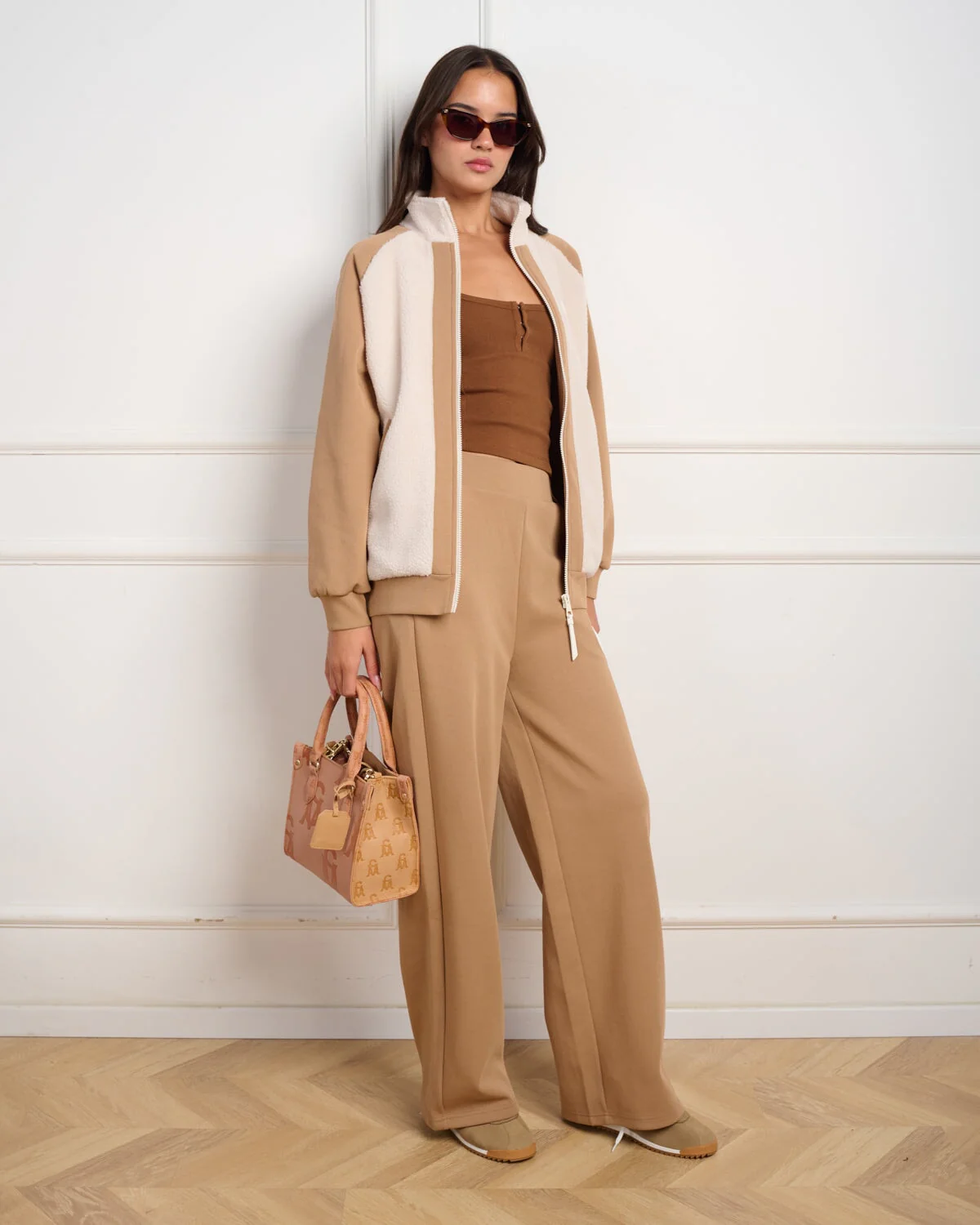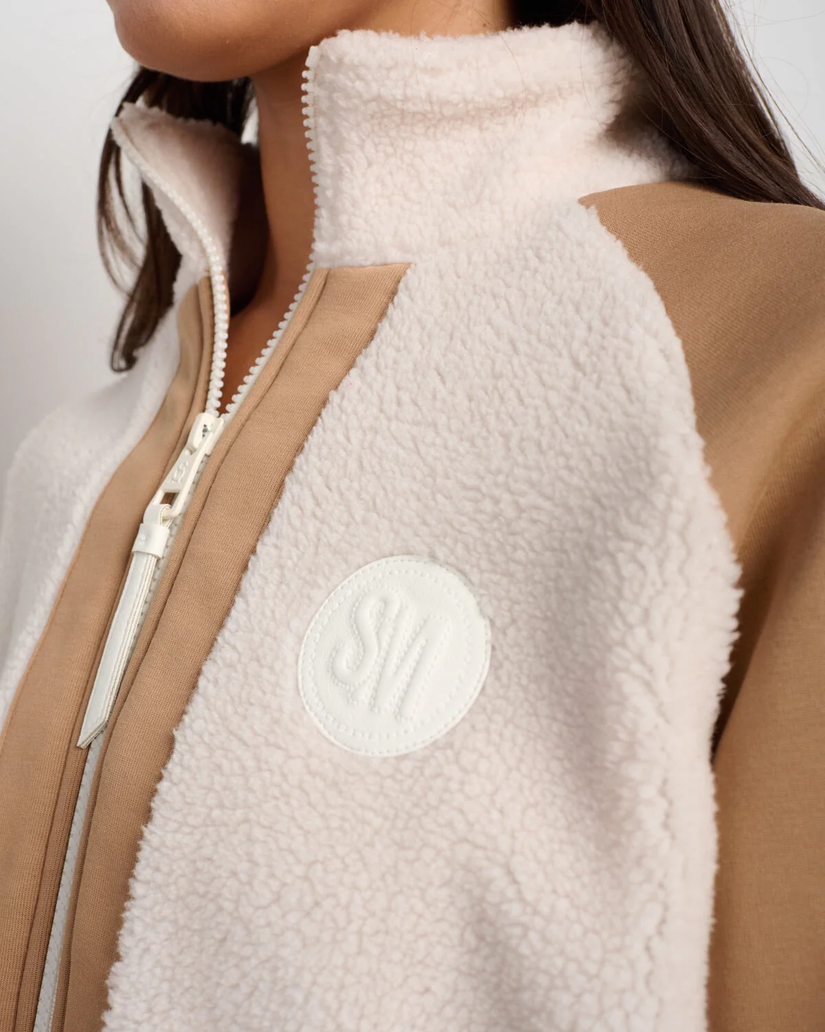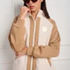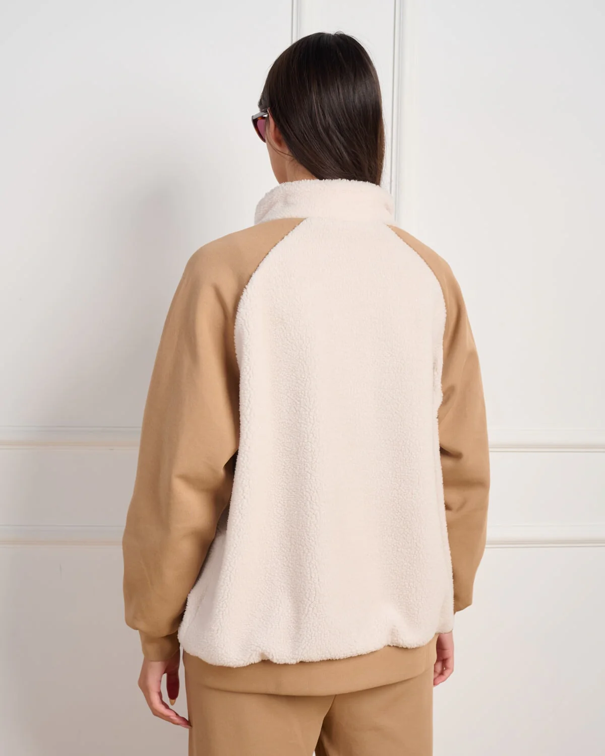 ג'קט ספורטיבי לנשים בקאמל משולב גוון קרם בפליז מבית סטיב מאדן