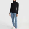 סוודר צמוד לנשים מבית Tommy Jeans עם צווארון גולף ועיצוב סריג ריב (Ribbed) קלאסי ומחמיא.