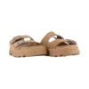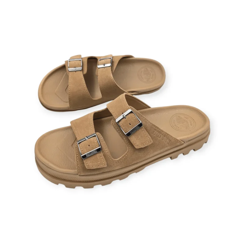 כפכפי סלייד לנשים מבית המותג פלדיום. כפכפים עם שתי רצועות קדמיות הנסגרות עם אבזם כסוף. עם סוליה מעט משוננת.