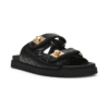 כפכפים שטוחים מעור לנשים בשחור עם אבזמים זהובים מבית סטיב מאדן