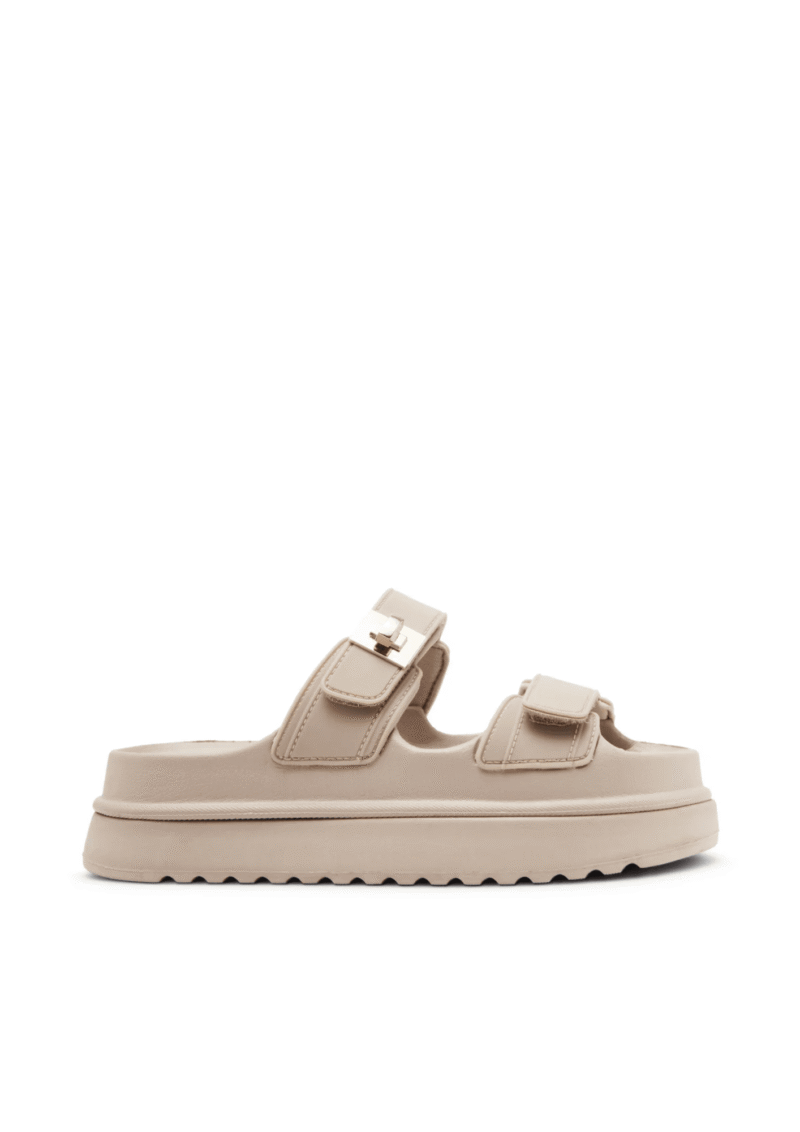 כפכפים לנשים בגוון טבעי עם סוליה עבה ואבזם זהוב מבית סטיב מאדן