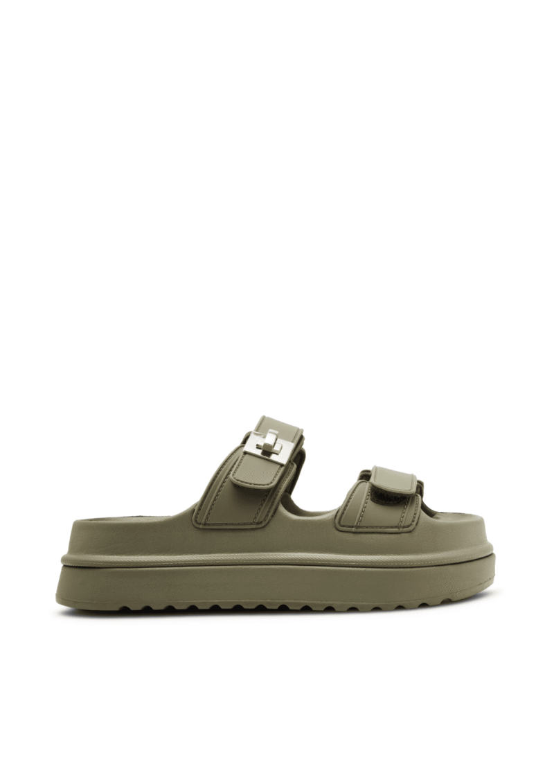 כפכפים לנשים בגוון טבעי עם סוליה עבה ואבזם זהוב מבית סטיב מאדן