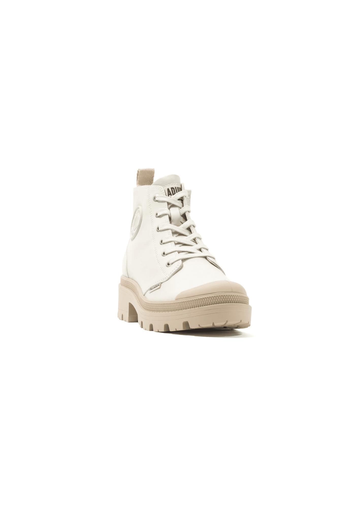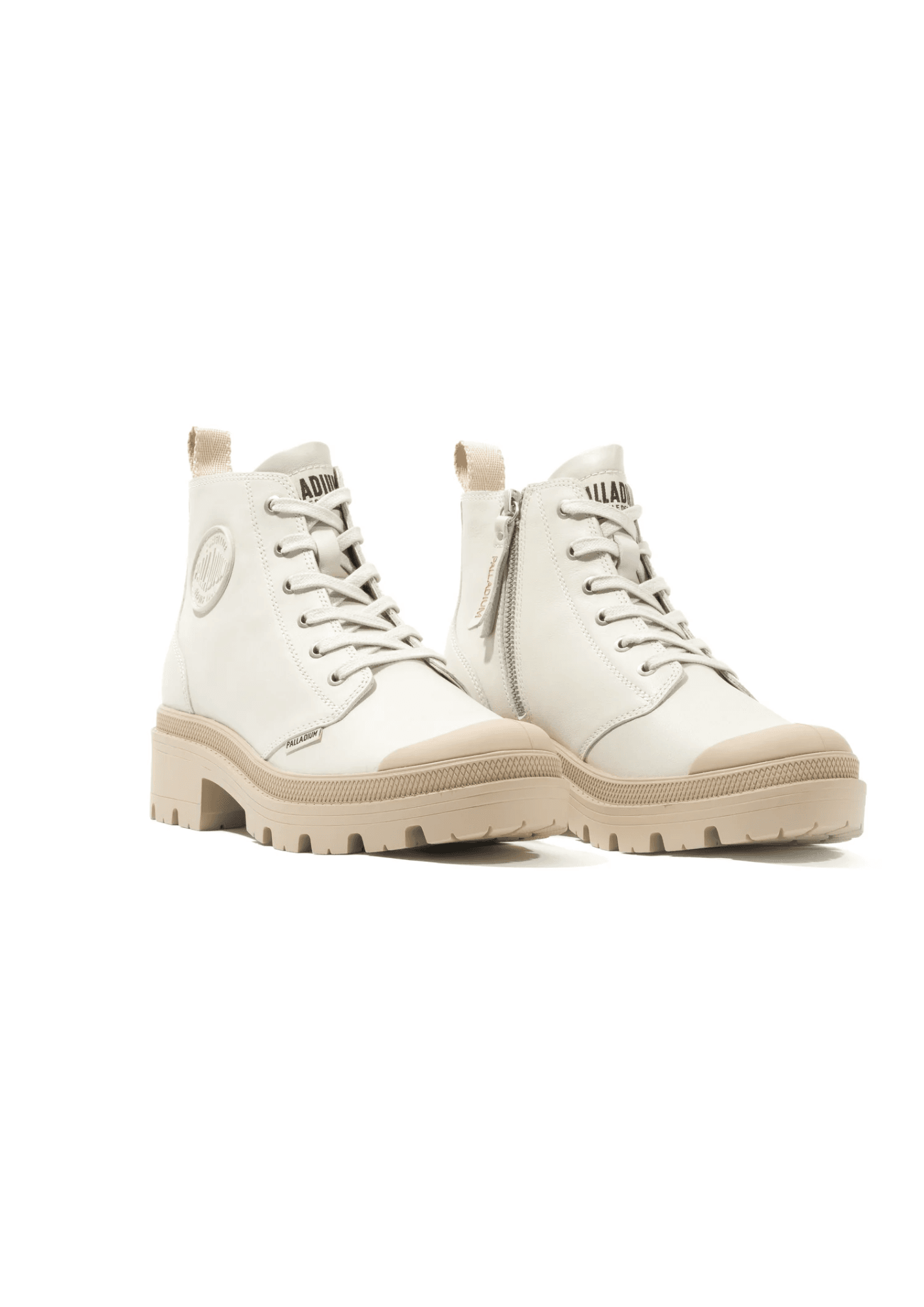 מגפי העור Pallabase מבית פלדיום מציגים שדרוג חורפי לדגם הפמפה האייקוני של המותג. למגפיים גזרה נשית יותר, עם עקב צ’אנקי עם פלטפורמה קדמית ושילוב של רוכסן צדדי ושרוכים קדמיים. בדומה לשאר הדגמים של המותג, סוליית הגומי מכסה את קצות האצבעות.